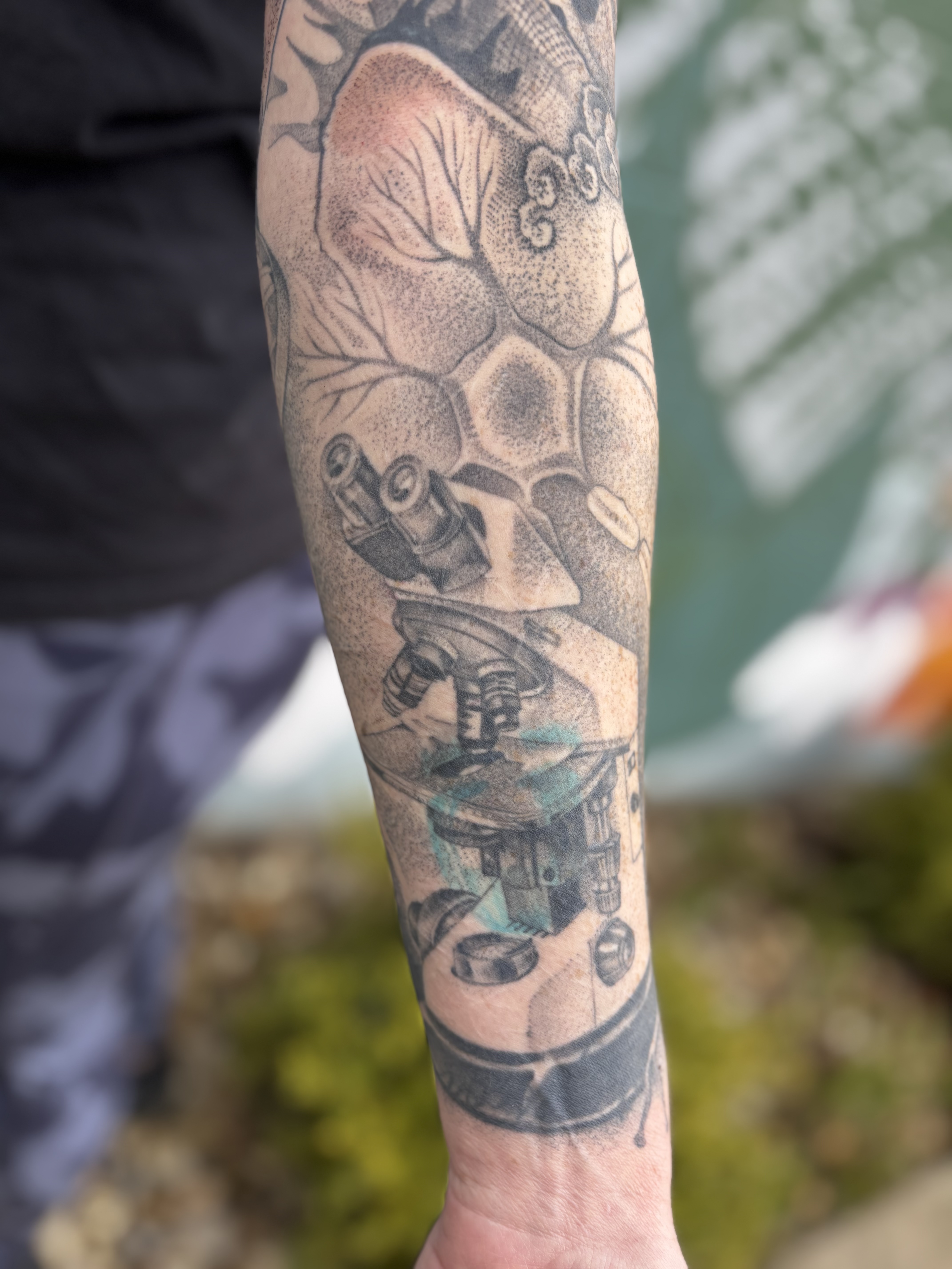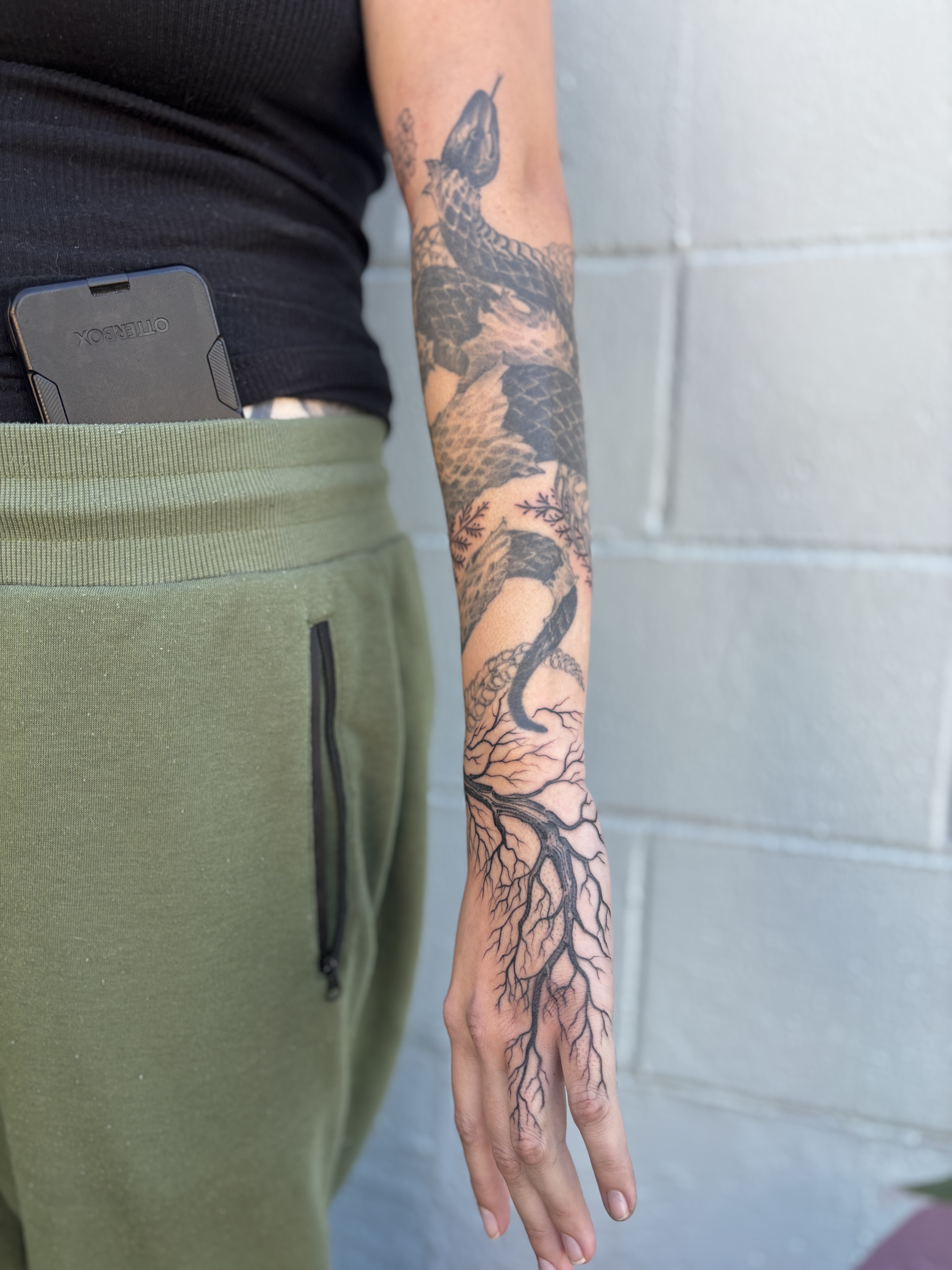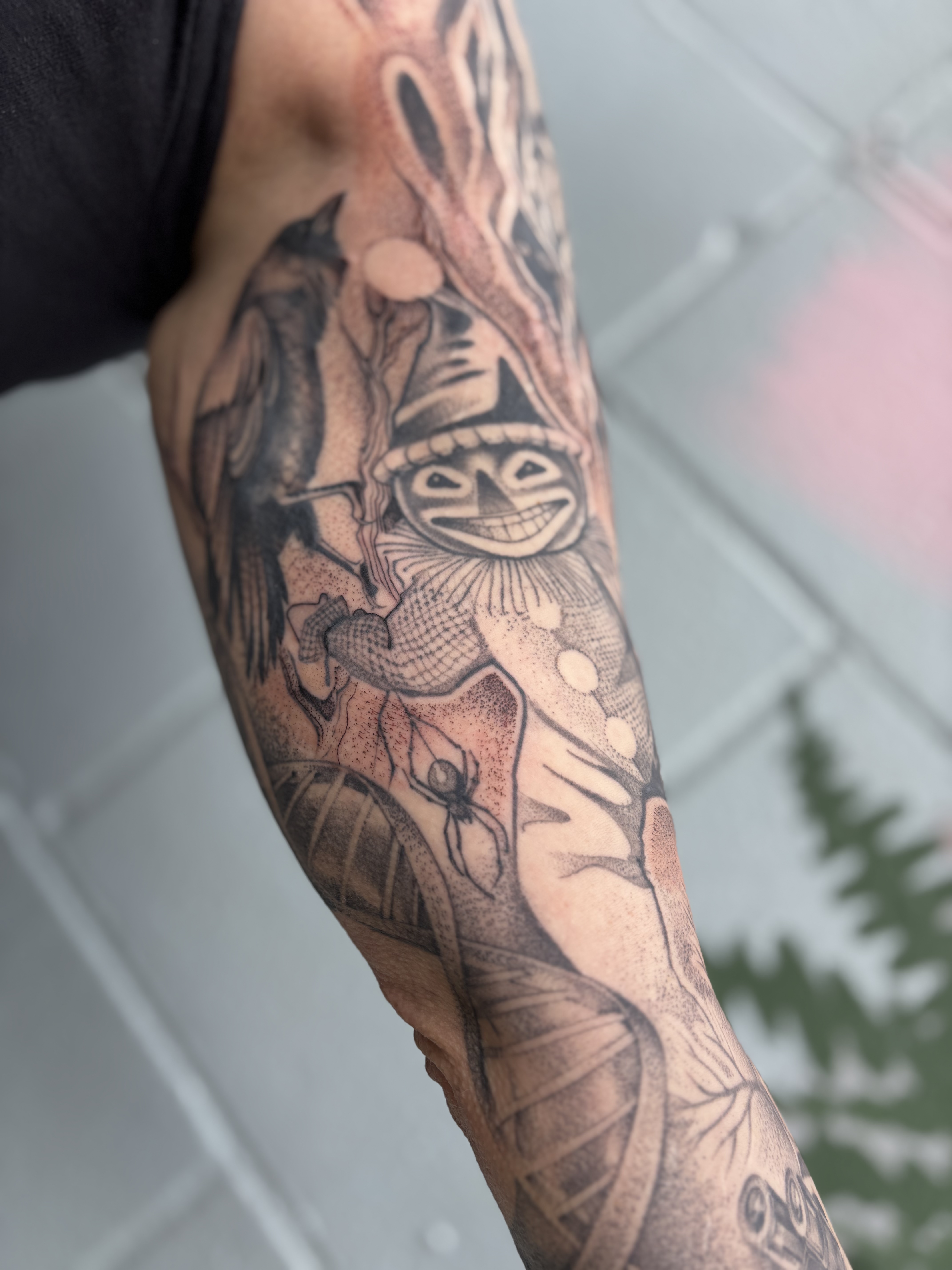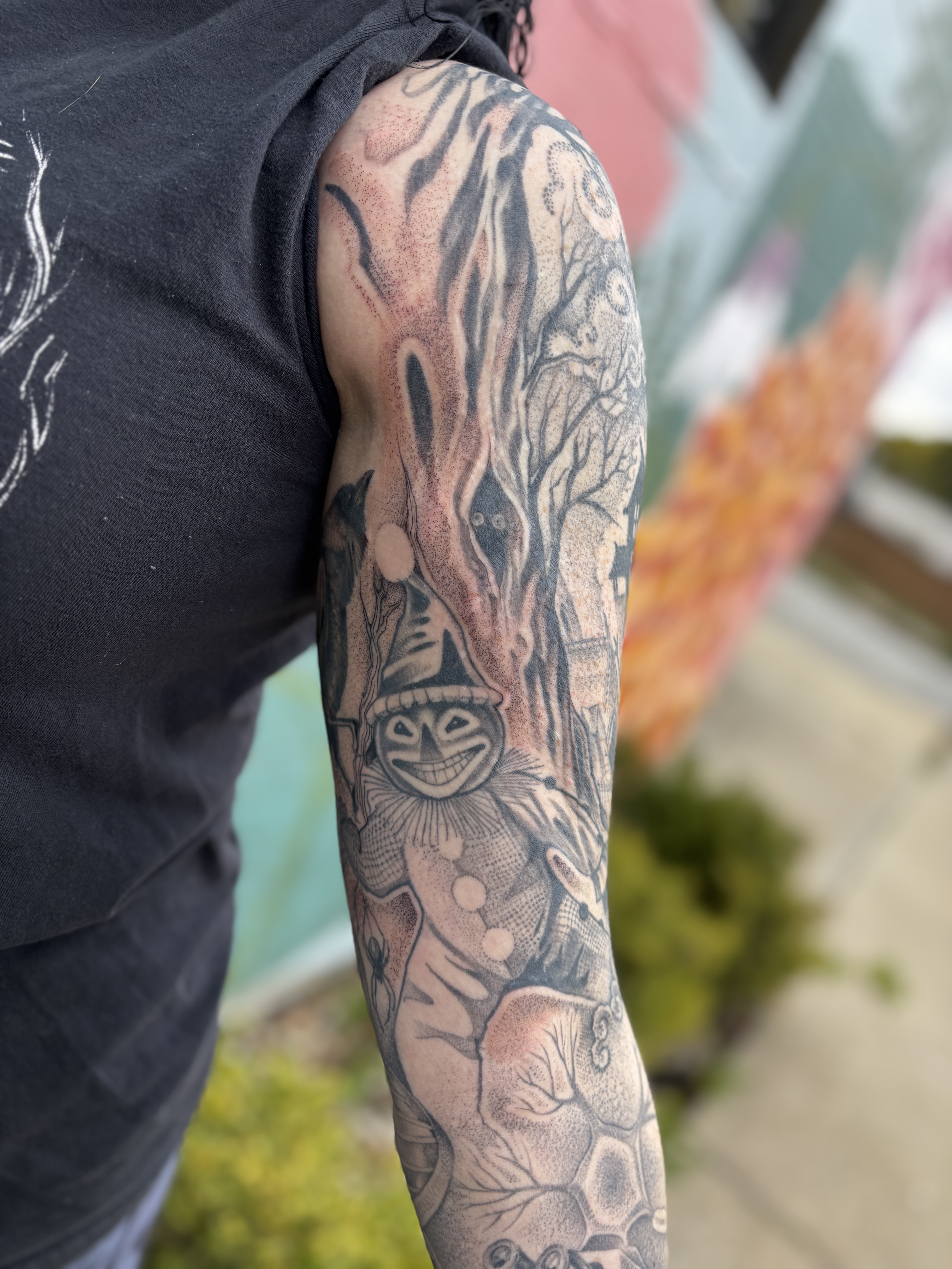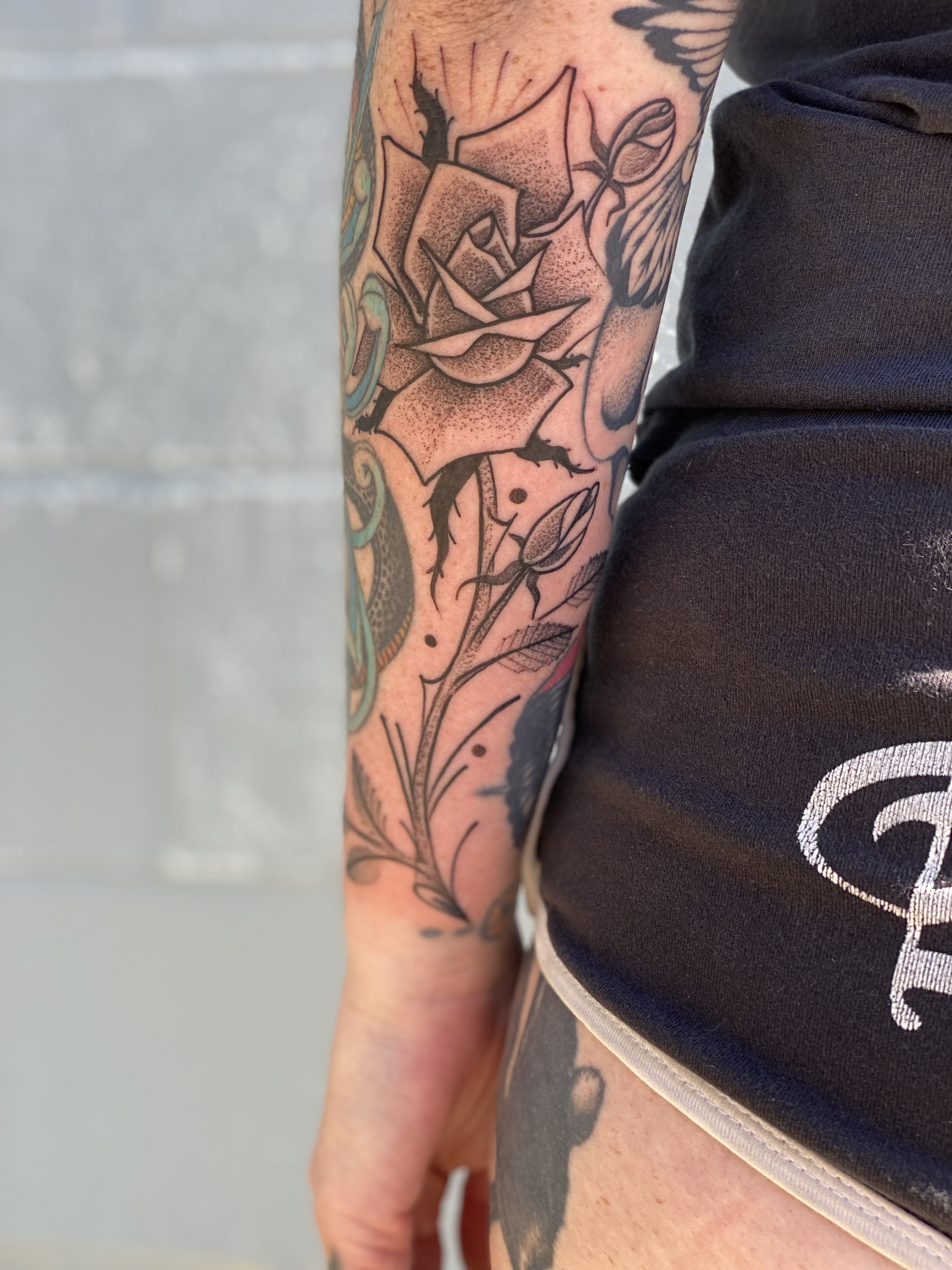 Ana Maldonado aka Ani Mal is determined to take up space and influence growth and cultural development in Kansas City. After years of feeling pushed out of society’s acceptance as a queer person of color resisting mainstream standards, they finally found solace in the tattooing counterculture. Their apprenticeship opened their eyes to the community they always wanted – one full of bleeding hearts and passionate freaks. Upon completion of their apprenticeship, Ani knew they needed to open their own shop to create a safe space for women and queer artists to thrive and grow in their craft. They found that space in a small studio in the West Bottoms and started to build the foundation of Tintoretta Tattoo. The artform of tattooing is important to Ani because of its ability to create beauty from pain, vulnerability through hardness, and connection in a community. They also realize it can easily create a culture of capitalism and toxic masculinity, and because of this they make sure to put their beliefs and values at the forefront of their business. They have always been passionate about drawing and are grateful to have found their calling as a tattoo artist. Their freehand-style animal tattoos are their specialty, but they're always ready to listen to their clients’ needs and deliver something they will truly cherish.