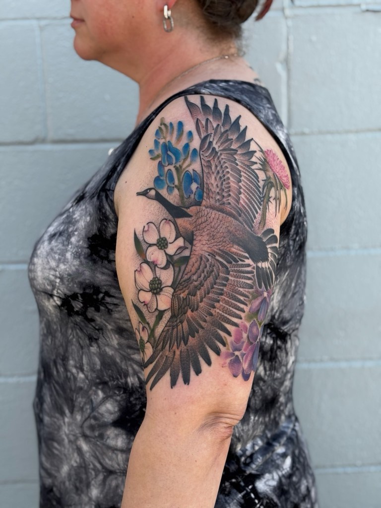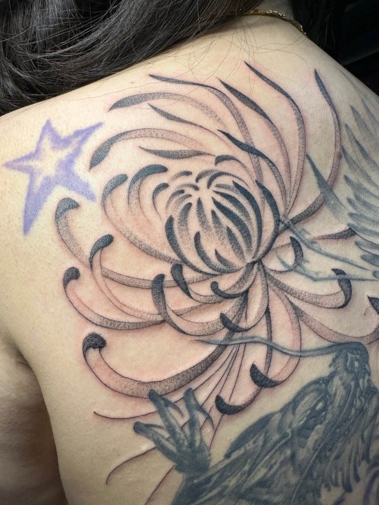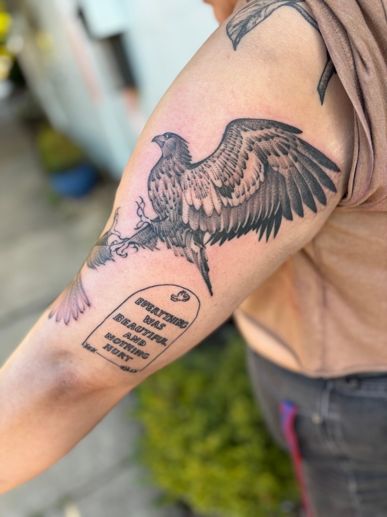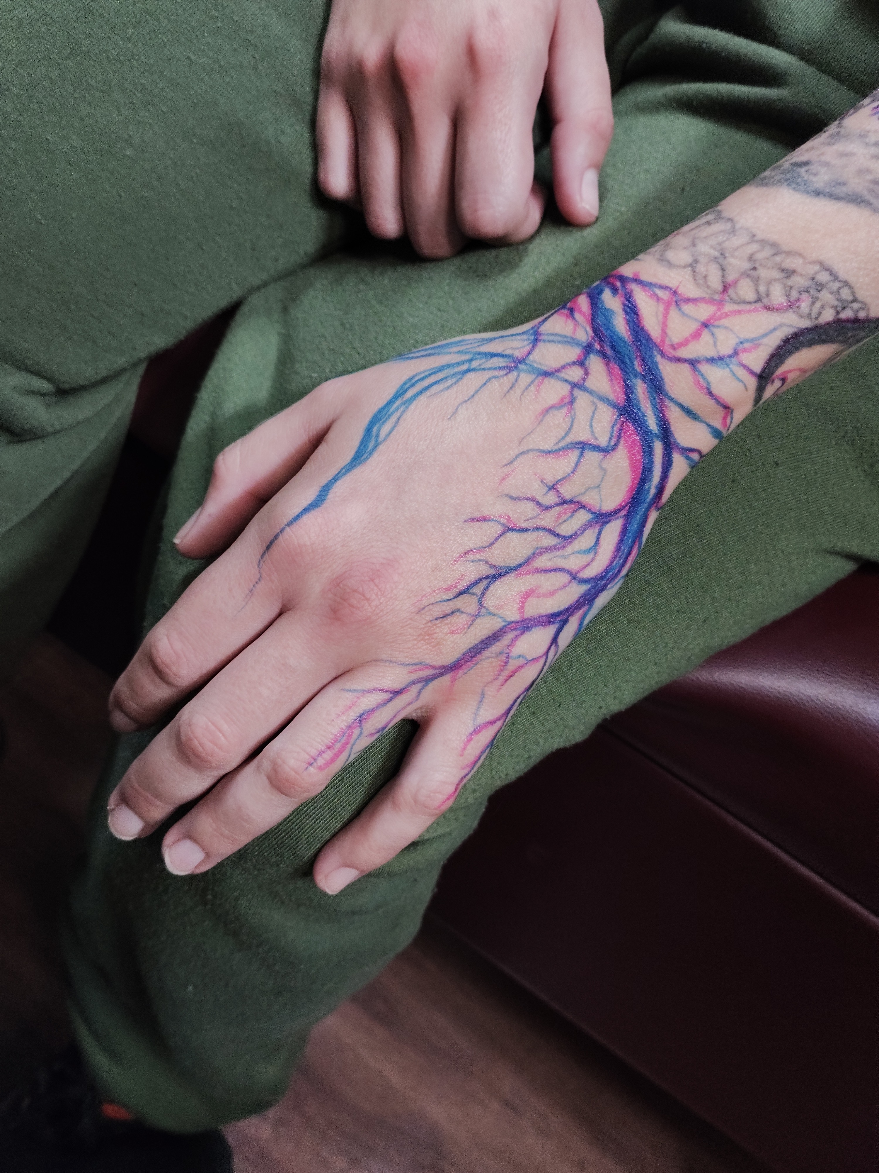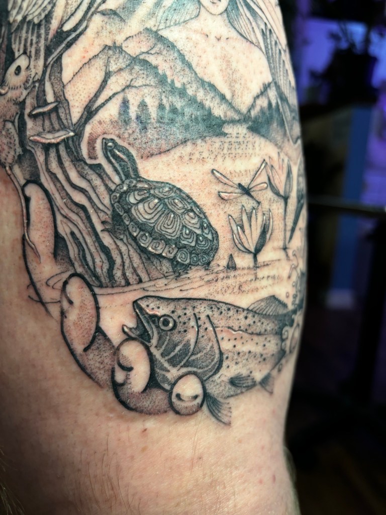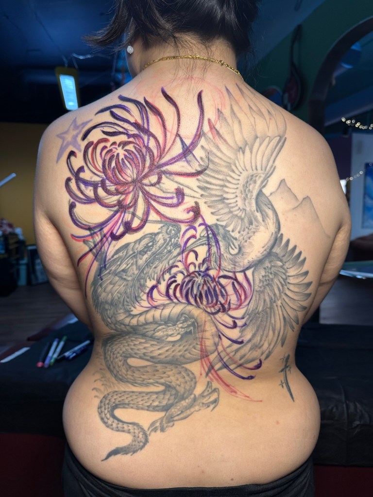 Ana Maldonado aka Ani Mal is determined to take up space and influence growth and cultural development in Kansas City. After years of feeling pushed out of society’s acceptance as a queer person of color resisting mainstream standards, they finally found solace in the tattooing counterculture. Their apprenticeship opened their eyes to the community they always wanted – one full of bleeding hearts and passionate freaks. Upon completion of their apprenticeship, Ani knew they needed to open their own shop to create a safe space for women and queer artists to thrive and grow in their craft. They found that space in a small studio in the West Bottoms and started to build the foundation of Tintoretta Tattoo. The artform of tattooing is important to Ani because of its ability to create beauty from pain, vulnerability through hardness, and connection in a community. They also realize it can easily create a culture of capitalism and toxic masculinity, and because of this they make sure to put their beliefs and values at the forefront of their business. They have always been passionate about drawing and are grateful to have found their calling as a tattoo artist. Their freehand-style animal tattoos are their specialty, but they're always ready to listen to their clients’ needs and deliver something they will truly cherish.