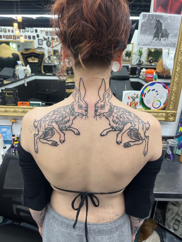 Syd has been a creative person all of his life. Once he got into high school he struggled a lot with society’s acceptance of being queer, with that as opening up a new way of expressing his art and to take on being creative to a new extent. Syd started to learn the curves of tattooing while still in high school and knew then, that an artistic career would form. He built up the credits and graduated early to get a head start on his tattooing career starting in 2023. Leading up to today, Syd prides himself in his versatility specializing in black and grey, anime/cartoon, fine line and traditional work. Being a part of the trans community, he very much advocates a safe environment for inclusion, especially for anyone needing a safe space. Syd’s biggest motivation is hearing each and everyone’s stories and being able to make a huge vision come to life but also being able to help heal people going through hard times or celebrations. He is a very persistent and passionate artist who is always open to growing and tackling any challenges he is given.